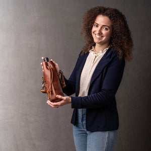 The Muscadine Wine Tote is handmade right here in our shop with the finest of Full Grain American leathers. We hand-pick our leather hides from a local tannery for a rustic look and feel. This gift will be used and loved for a lifetime!