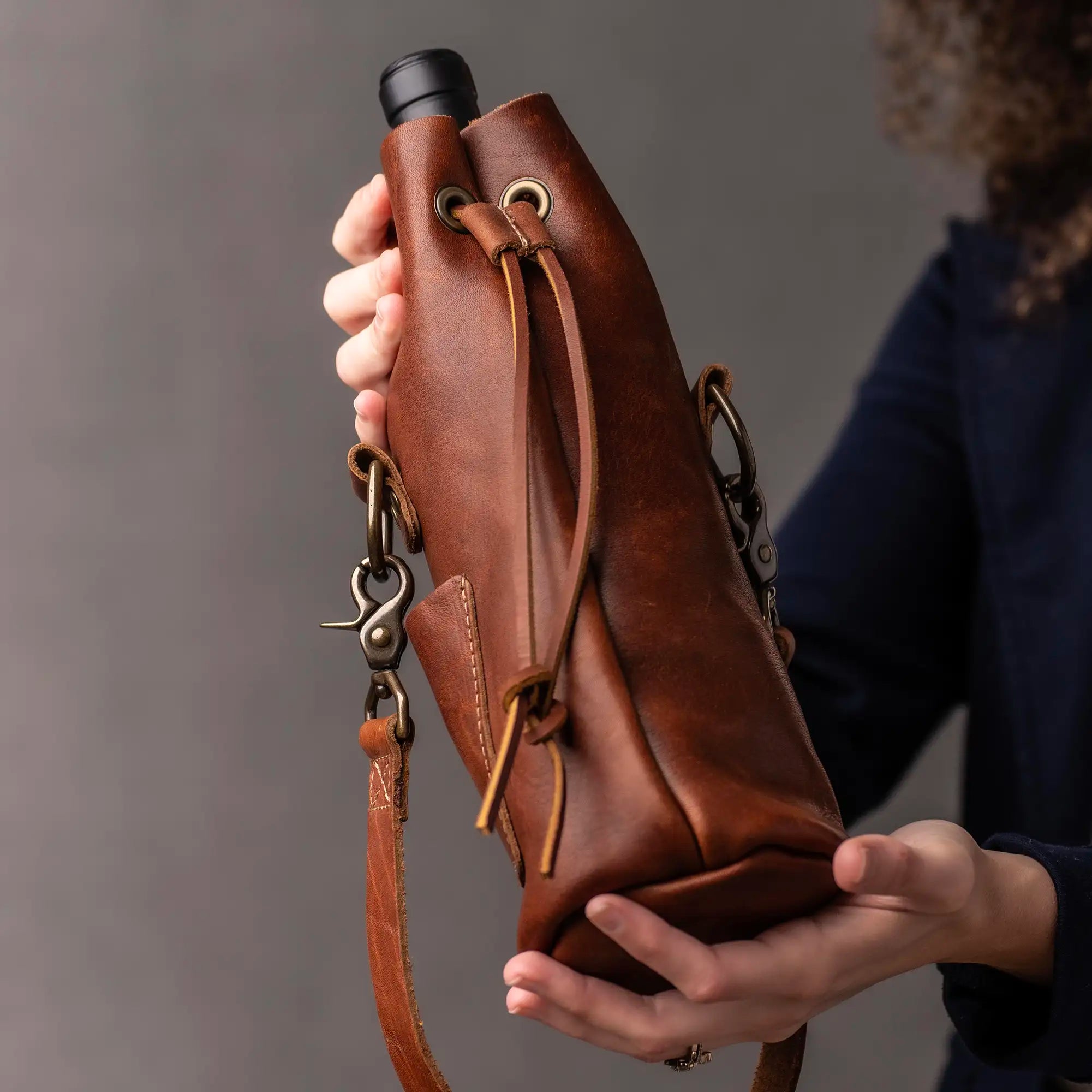 The Muscadine Personalized Fine Leather Wine Tote Wine Bottle Carrier Bag