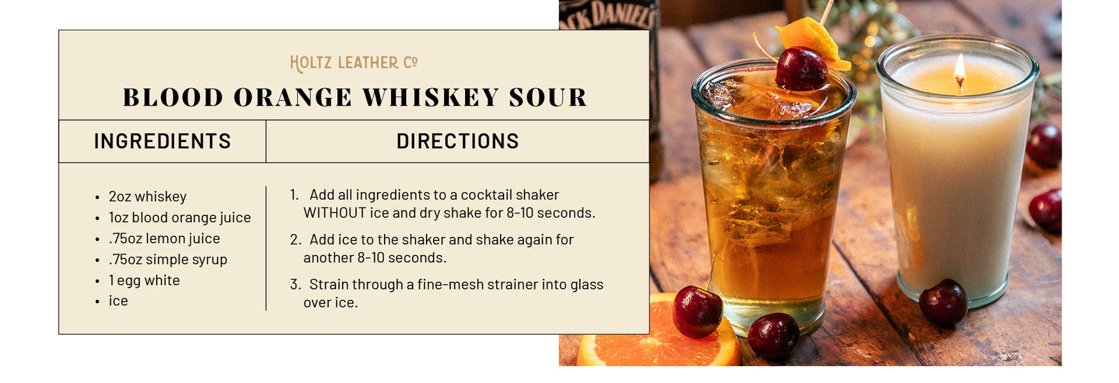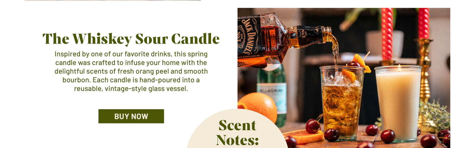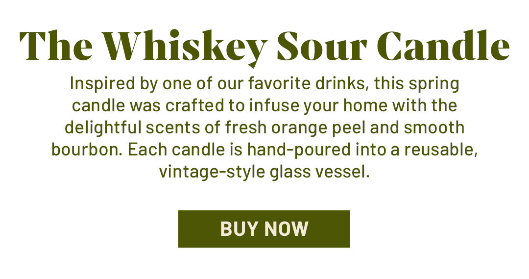 This spring, step into the cozy ambiance of a classic speakeasy with The Whiskey Sour Candle. Experience the rich aroma of aged whiskey, accented by notes of smoke and earthy vetiver, while hints of warm tonka bean and zesty orange peel add depth and complexity to the fragrance. Available only for a limited time! PLUS: the vintage-inspired glass vessel can be easily reused after your candle has burned down. Simply clean the glass with detergent, wipe out with alcohol & you're ready to make your next Blood Orange Whiskey Sour - check out the recipe below!
