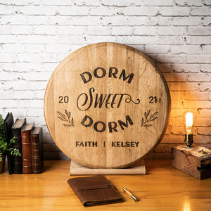 This wooden school sign is made from Tennessee whiskey barrel head in our Huntsville, Alabama shop. Personalize it with you & a roommate's name! It's also the perfect gift for a student. Made in the USA.