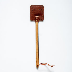 While the first patent for commercial flyswatters was issued in 1900, the last 100+ years has done little to glorify the look or the design of these handy devices. With our customized, full grain leather and whiskey barrel handled flyswatter, you’ll be laying a pest to rest - in style. No front porch is complete without one!