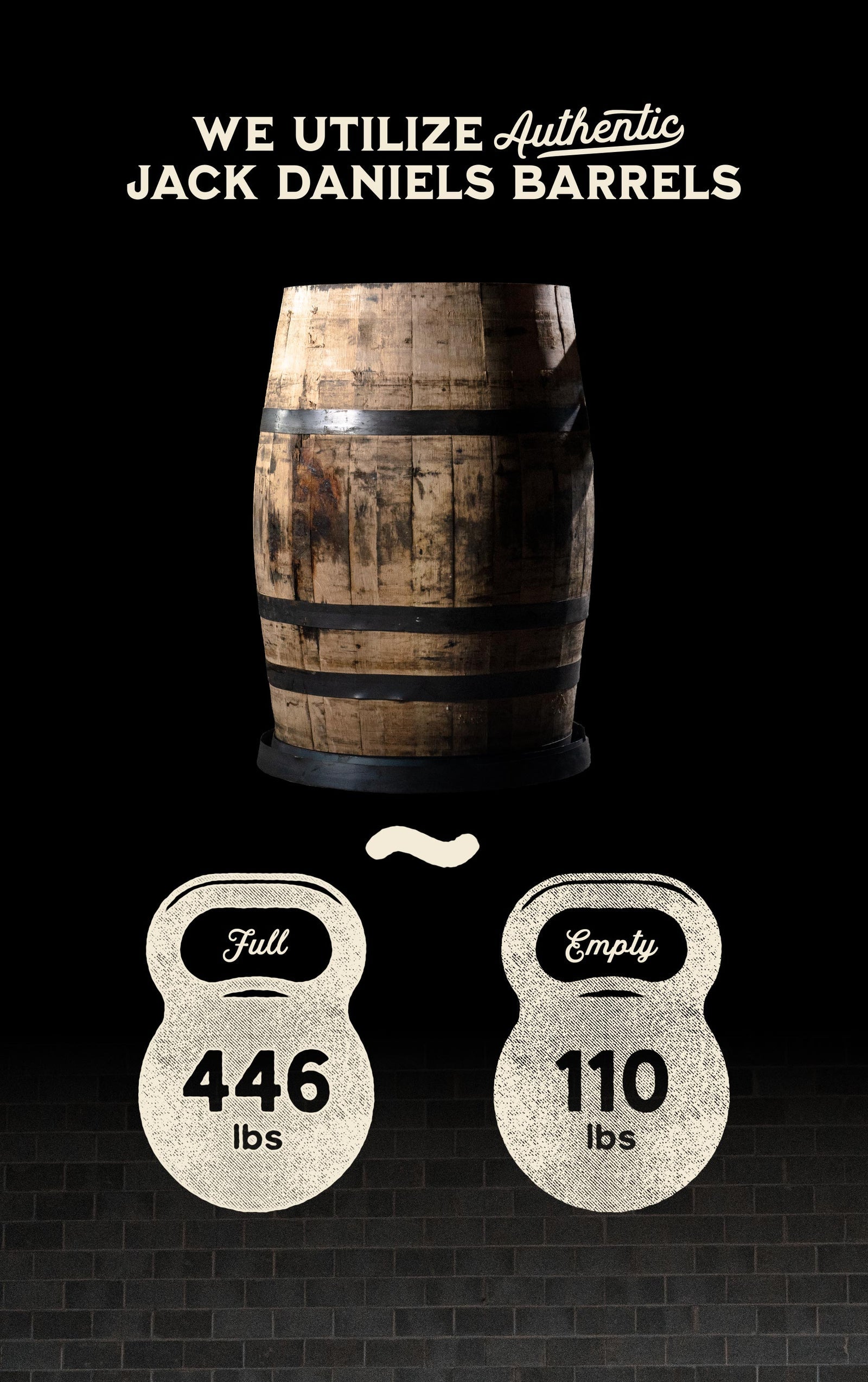 Every millworks barrel comes directly from Lynchburg, Tennessee. We only use authentic Jack Daniel's Whiskey Barrel Staves to make our products.