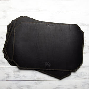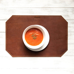 These leather placemats are made to handle anything from the light brunch to the family feast. Personalize your mats with names, initials, or leave them smooth. Set the table in a way that will be remembered long after the meal.