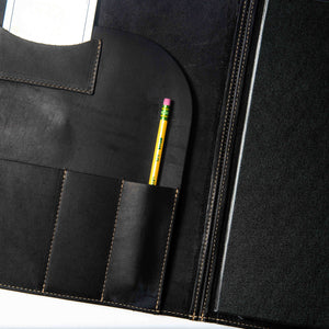 The Artisan has everything you need for a top-notch writing experience. The hard cover, made from Full Grain American Leather, allows you to write anywhere - without worrying about finding a surface. The details - such as the rounded corners, elastic closure, and interior pockets - make this piece one that will be used and loved for years to come. Add initials to the outside of the cover to add a personal touch!