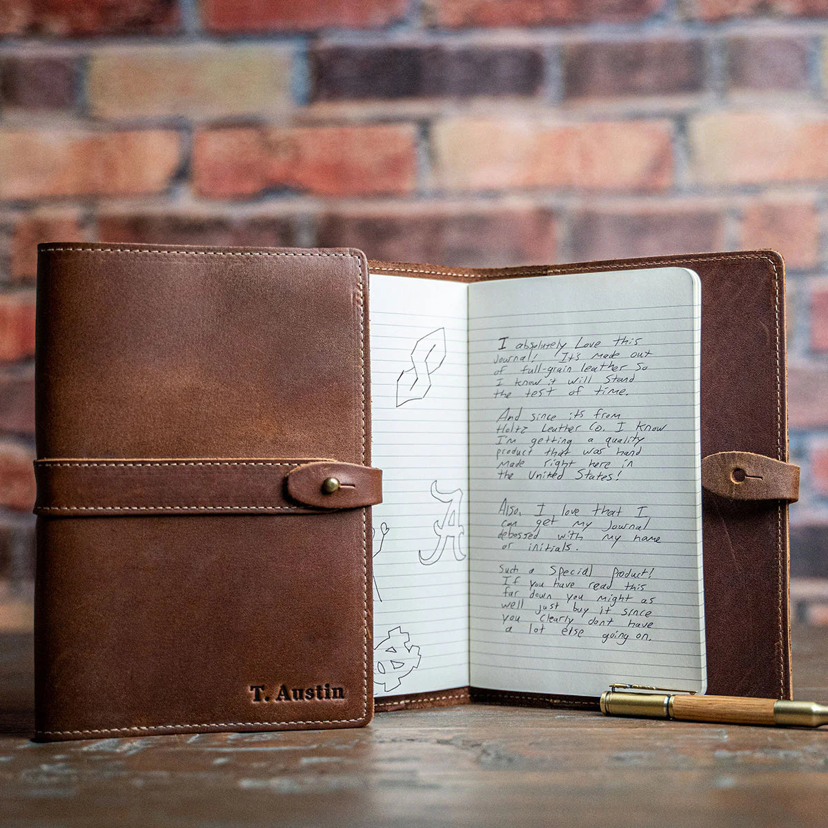 The Inventor is our most popular journal for a reason! Made with heirloom-quality leather, the Inventor is perfect for note-taking, list-making, and creating. Keep everything you need in one place with the added pencil loop and inside divider for scrap papers. A sturdy brass ball stud will keep it safe and secure. This journal can be customized with your choice of leather color and personalized with your name or initials! This is the journal for visionaries, inventors, and collaborators. Give your loved one the Inventor journal as a special gift to commemorate your anniversary.