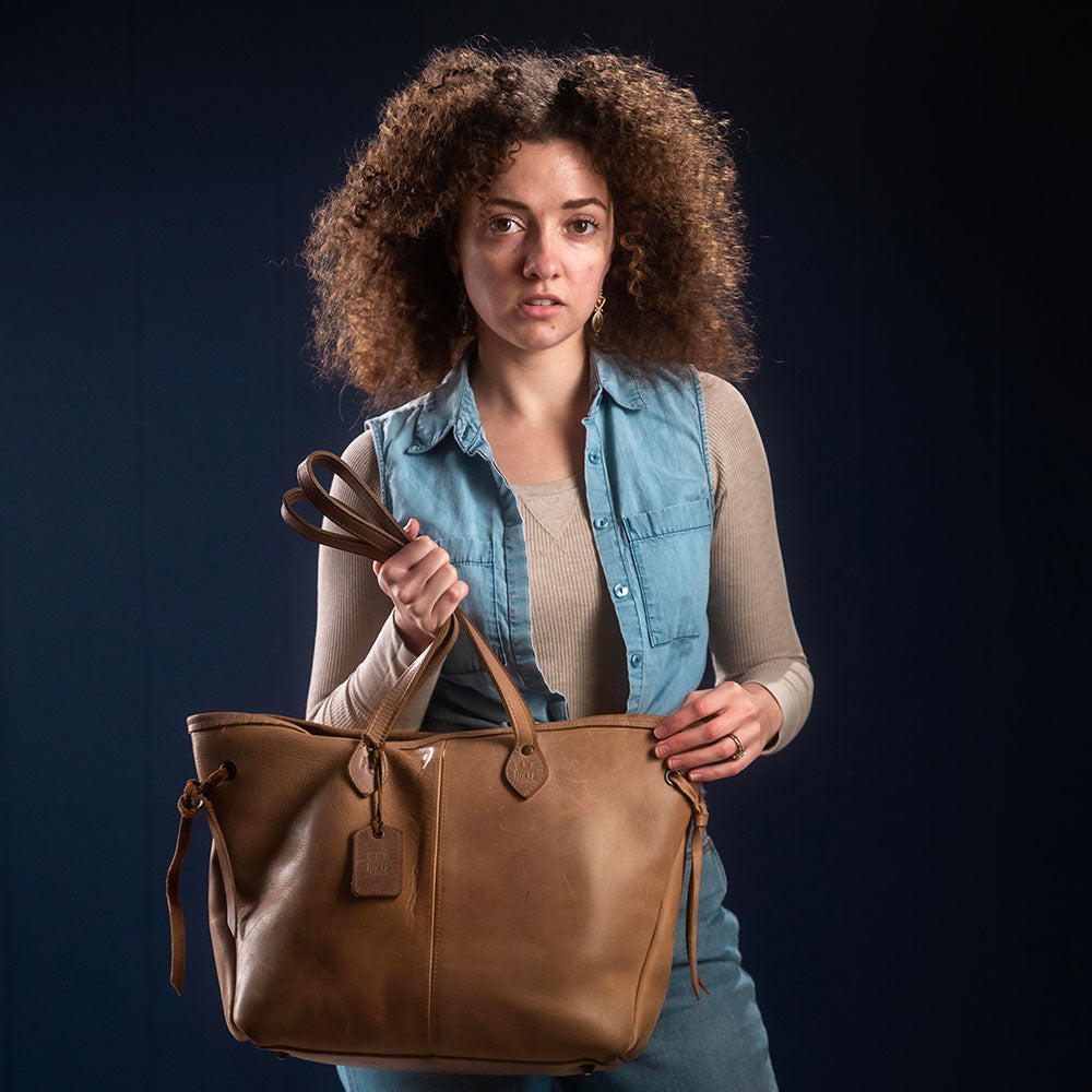 This leather tote bag is carefully crafted from the finest full-grain American leather. The large open compartment is built to hold laptops, wallets, makeup, and other essential accessories. Stow keys and a phone in the 2 internal quick access pockets. Four metal feet provide a steady base. The leather tote is a classic for a reason. User-friendly and fashionable, this fine leather tote bag will quickly become your everyday carry.