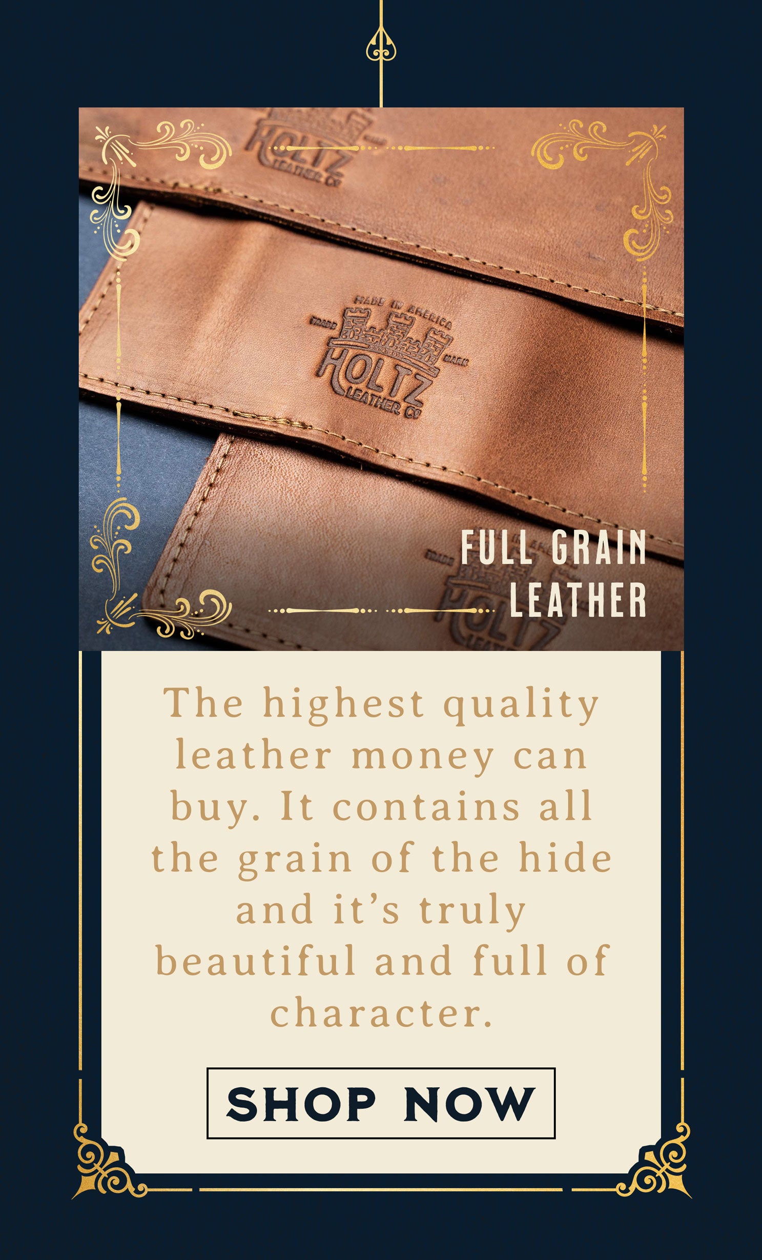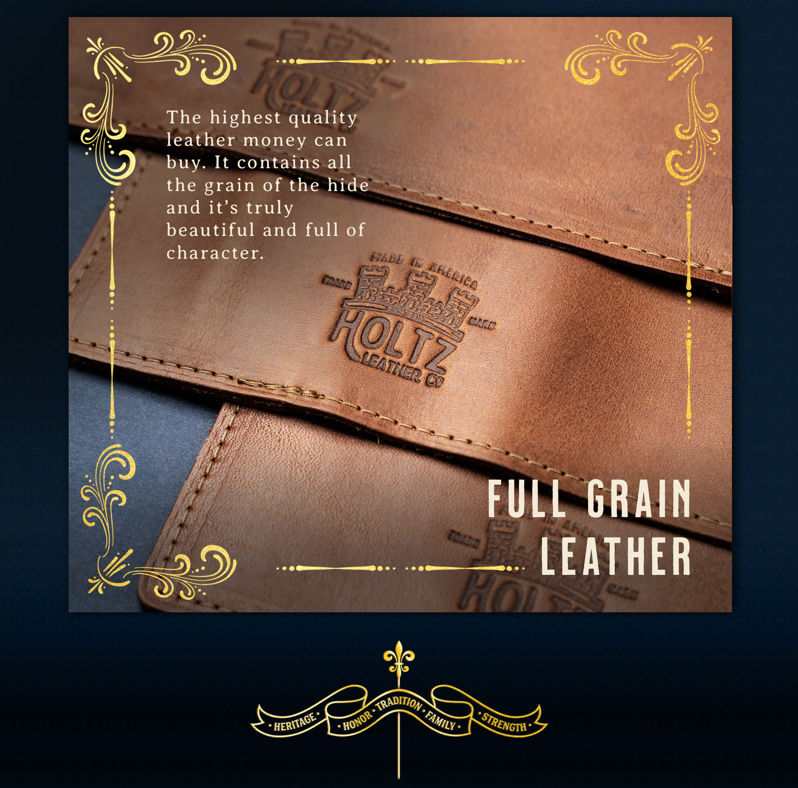 Our full grain leather products embody classic American craftsmanship and are designed to withstand the test of time. With skilled artisans meticulously handcrafting each piece, attention to detail is evident in every stitch and cut. The use of full grain leather - the highest quality leather available - ensures durability and a beautiful patina that only improves with age. Our commitment to quality craftsmanship means that our products are built to last a lifetime, or maybe two.