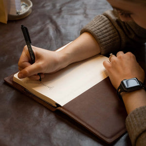 Shrunken Bison Leather is fast becoming a favorite around here - the shrinking process creates such a unique look and every single hide is different. Ready to personalize with your name or initials, this journal is ready to help you tell your story.