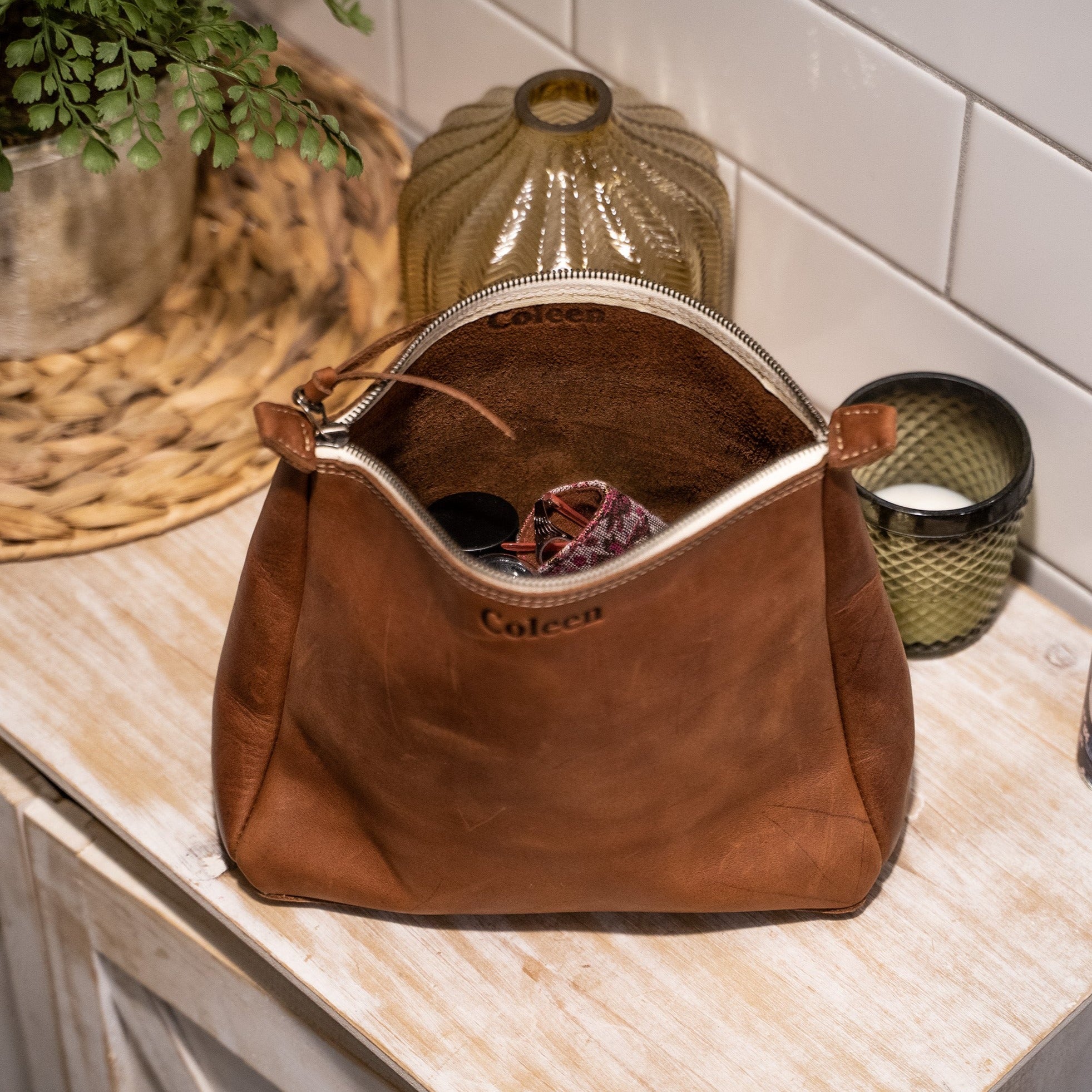 Made from the finest full-grain leather, this cosmetic bag exudes poise, grace and elegance. Each bag is carefully hand-crafted to ensure durability and longevity, making it a timeless addition to your beauty routine.