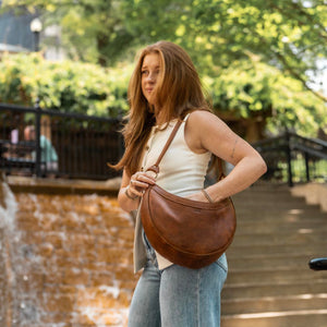 The Luna Fine Leather Crescent Shoulder Bag Purse