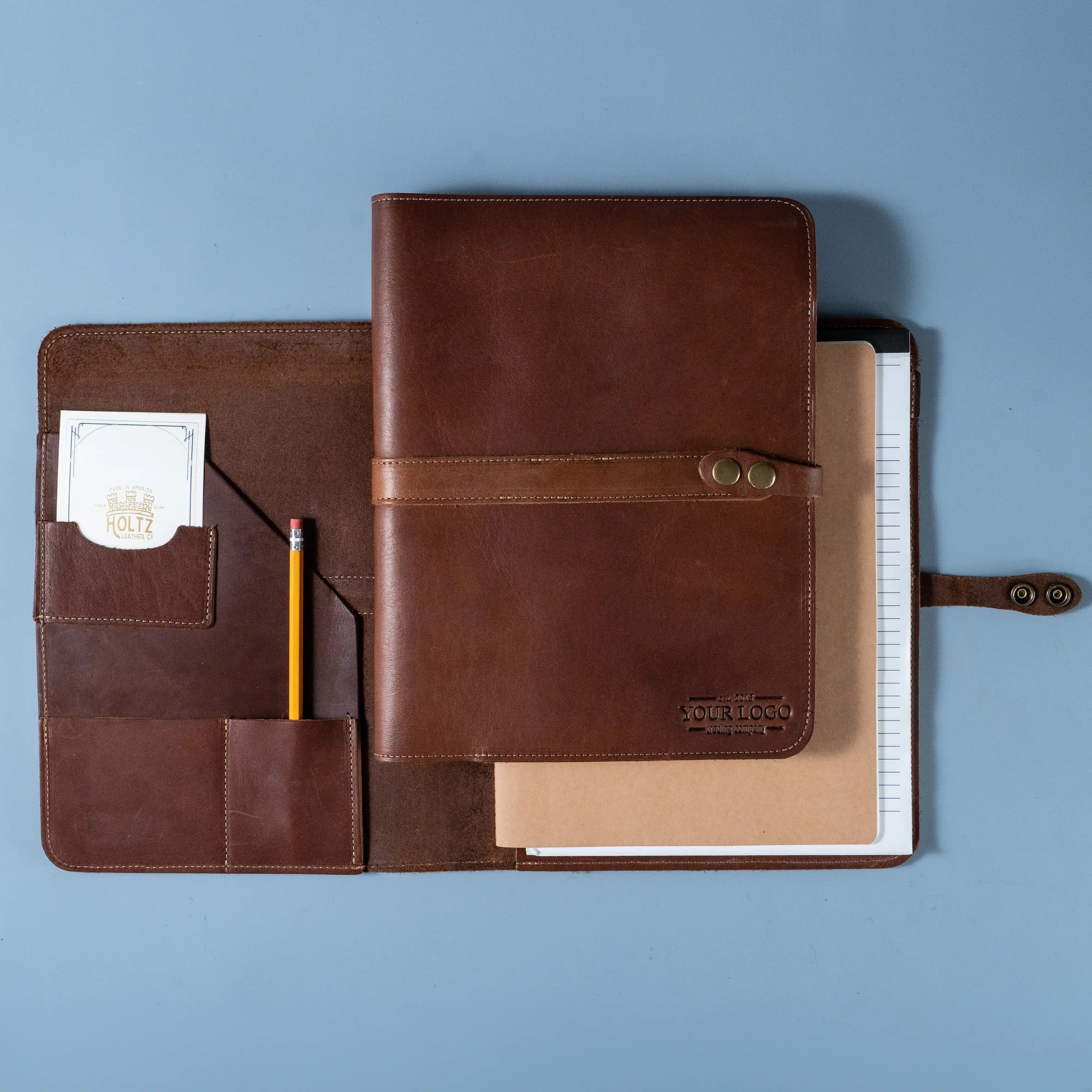 Our team is fully prepared to take your logo and turn it into a beautiful debossing on any of our corporate leather products. Simply send us your logo (preferably in a vector format) and we will generate a digital proof for your to approve. After that, we will use your logo to make a debossing die which will be heated to 400 degreees and pressed into the leather, leaving a crisp indent showcasing your logo.