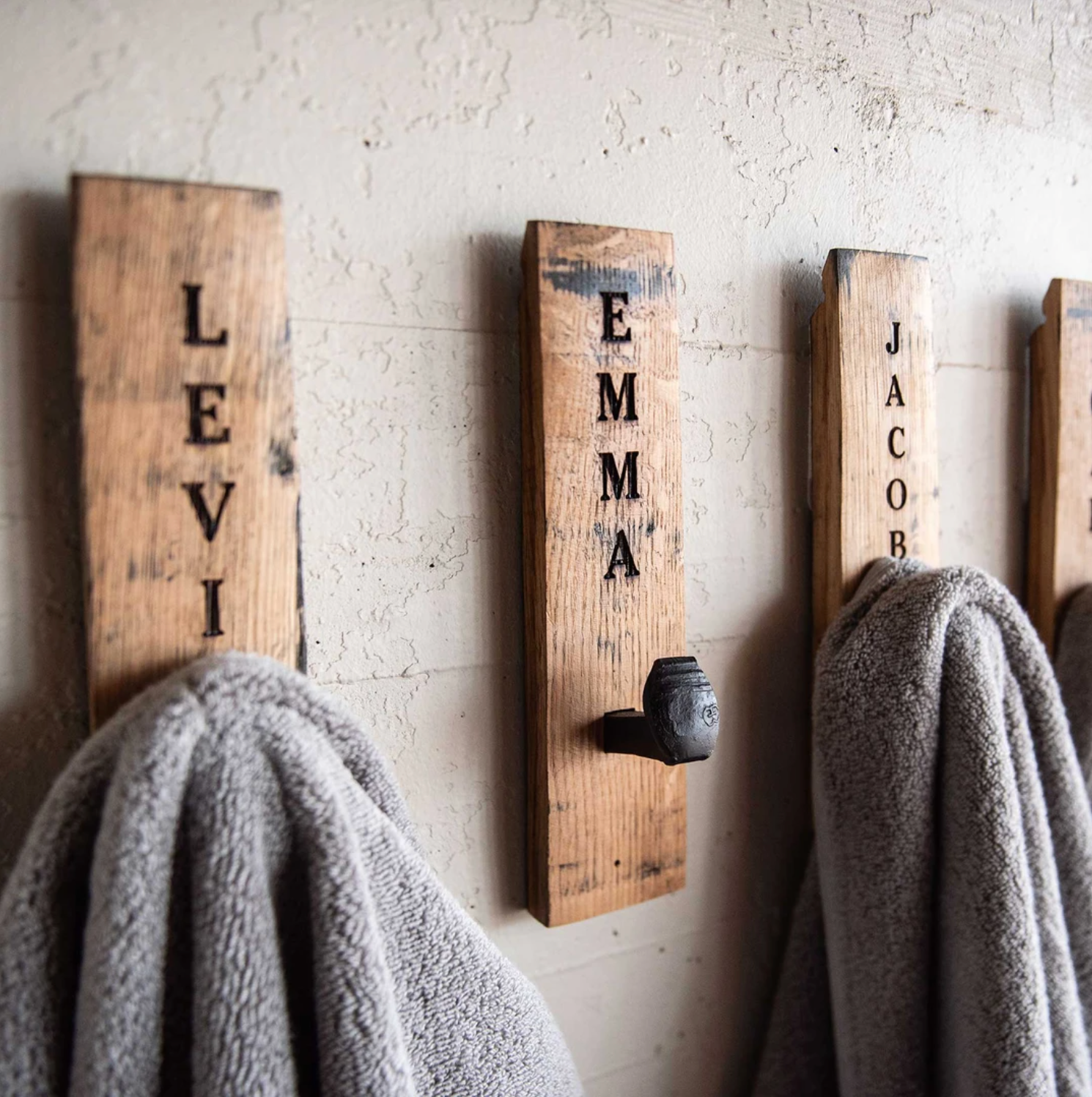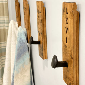 Our whiskey barrel wall hook provides a perfect place to hang your hat, towel or just about anything that needs a place to hang. Made in the USA.